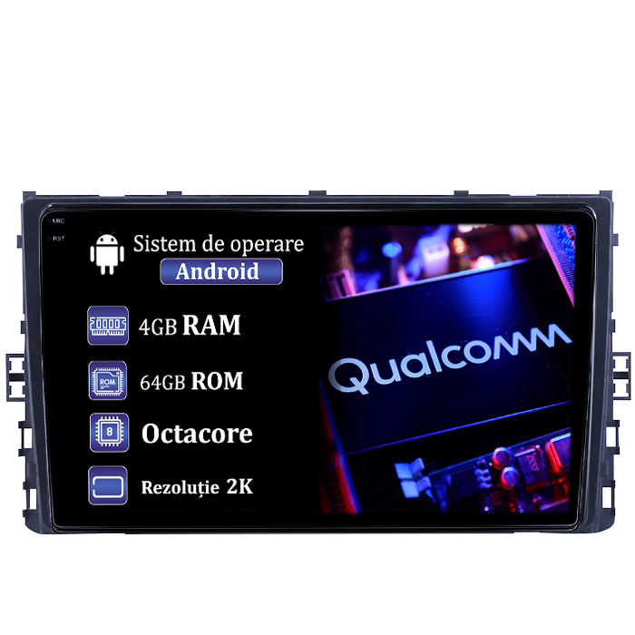 Volkswagen Navigatie dedicata Volkswagen T6 2015+, Taigo, T-Roc, T-Cross, Caravelle, Arteon, 4GB RAM 64GB ROM, Octacore Qualcomm, Display 9" QLED 2K, Carplay, Android 14, Bluetooth, Magazin Play, Suport Camere A