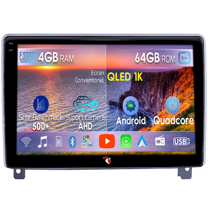 Peugeot Navigatie dedicata Peugeot 407 2004-2011, 4GB RAM 64GB ROM, Octacore, Android 14, Display QLED 1K 9", Carplay&Android Auto, SIM 4G, Ventilator Activ