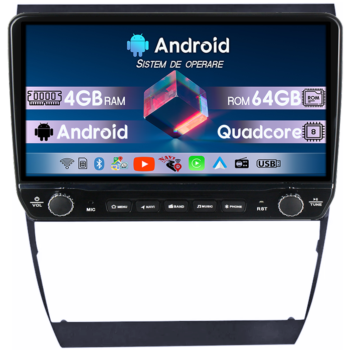Navigatie dedicata A6 S6 1999-2004 Tesla cu butoane rotative model 2024, 4GB RAM 64GB ROM, Procesor Quadcore, Android 14, Display QLED 10", DSP, Carplay&Android Auto