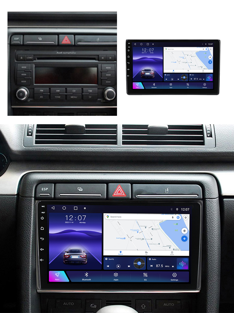 Vehiculele care nu au bord 2DIN (navigația mare) de fabrică necesită un kit de conversie de la 1DIN la 2DIN. Kitul este un produs original Audi.