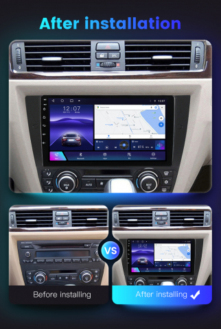 Nu este compatibil cu masinile fara navigatie de fabrica si fara amplificator pe fibra optica. La masinile care au butoane jos la climatronic este nevoie de o rama pentru a reloca panglica cu butoanele de incalzire scaun, start stop si alte functii.