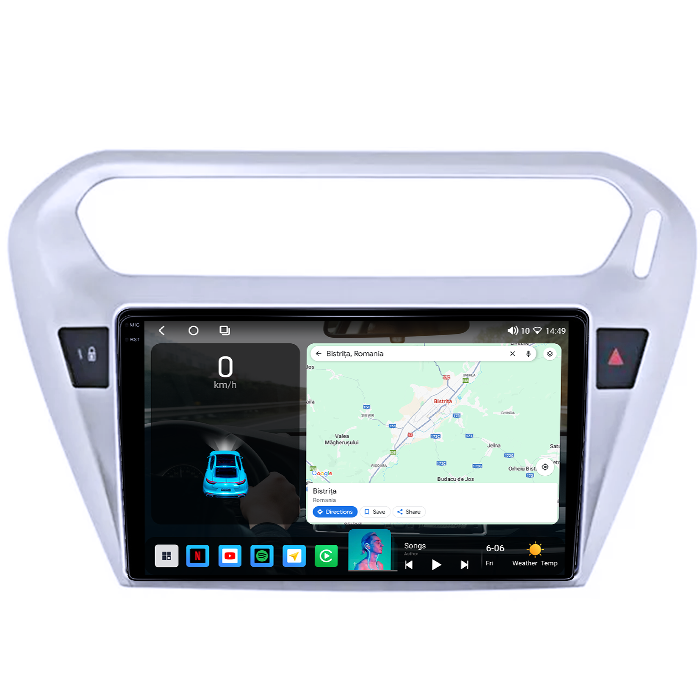 Peugeot Navigatie dedicata Peugeot 301 2013-2016C-Elysee 2012, 4GB RAM 64GB ROM, Procesor Qualcomm Octacore, Android 14, Rezolutie 2K, Display QLED 9", DSP, Carplay&Android Auto, SIM 4G