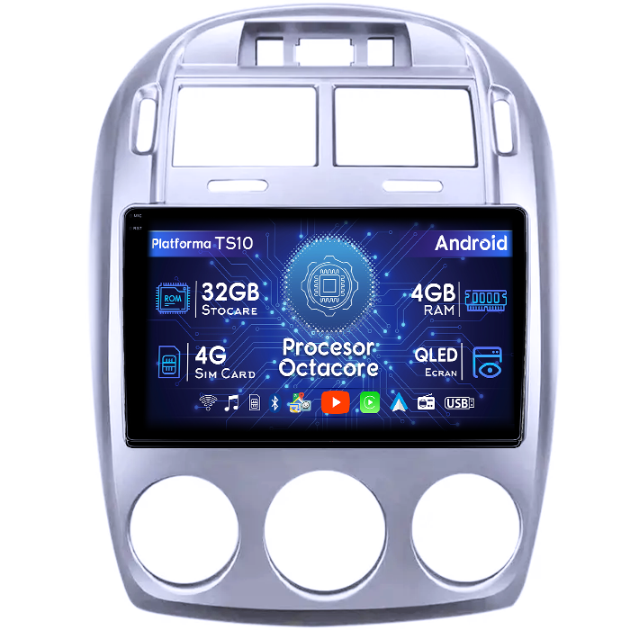 Kia Navigatie dedicata Kia Cerato 2005-2006, 4GB RAM 32GB ROM, Octacore, Android 14, Display QLED 1K 9", DSP, Carplay&Android Auto, SIM 4G, Bluetooth, Ventilator Activ