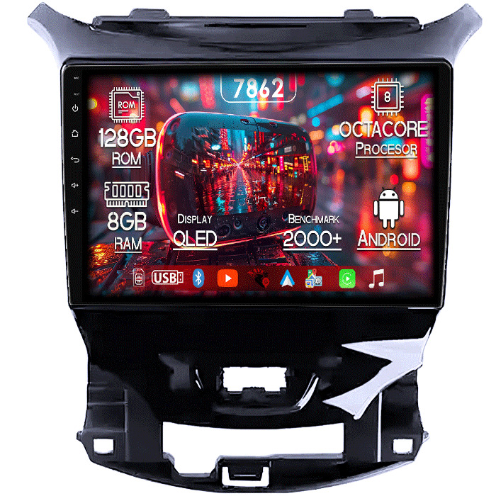 Chevrolet Navigatie dedicata Chevrolet Cruze 2017, 8GB RAM 128GB ROM, Octacore, Platforma 7862,Android 13, Display QLED 9”, Suporta camera 360º, DSP, Carplay&Android Auto, SIM 4G, Ventilator Activ