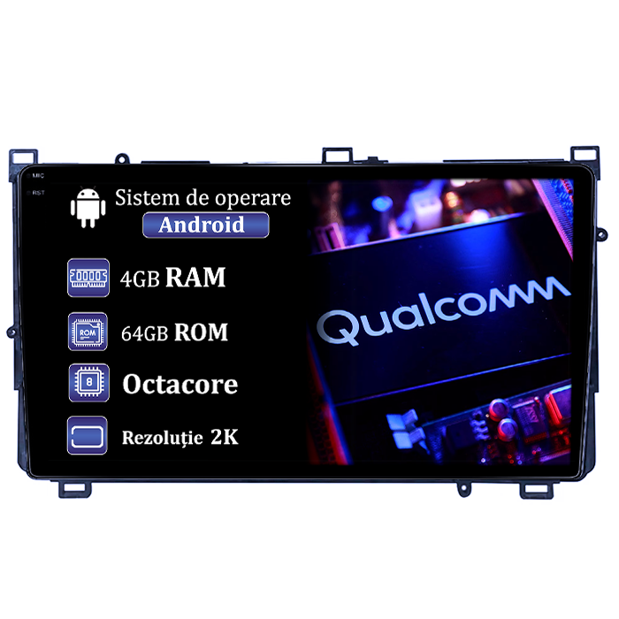 Toyota Navigatie dedicata Toyota Corolla 11 Auris E180 2017-2018, 4GB RAM 64GB ROM, Procesor Qualcomm Octacore, Android 14, Rezolutie 2K, Display QLED 9", DSP, Carplay&Android Auto, SIM 4G