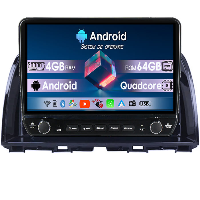 Mazda Navigatie dedicata Mazda CX-5 2012-2015 Tesla cu butoane rotative model 2024, 4GB RAM 64GB ROM, Procesor Quadcore, Android 14, Display QLED 10", DSP, Carplay&Android Auto