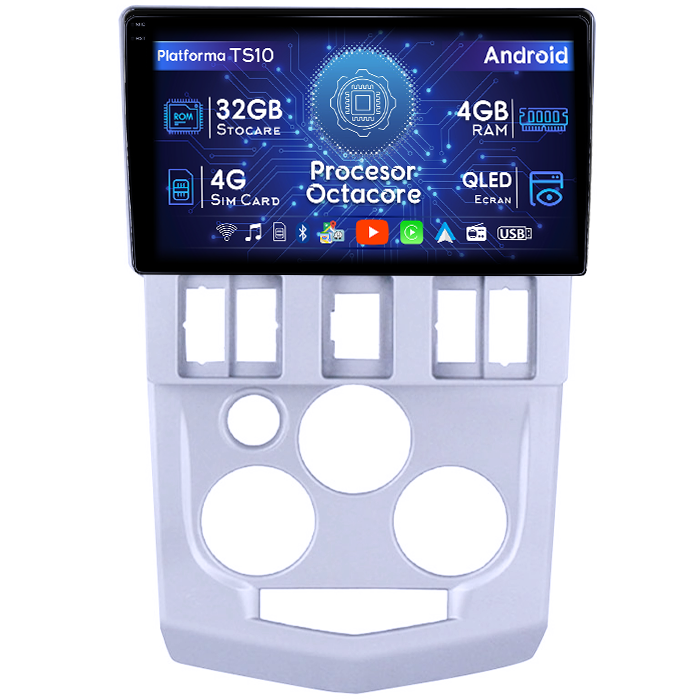 Dacia Navigatie dedicata Renault&Dacia 2004-2009, 4GB RAM 32GB ROM, Octacore, Android 14, Display QLED 1K 9", DSP, Carplay&Android Auto, SIM 4G, Bluetooth, Ventilator Activ