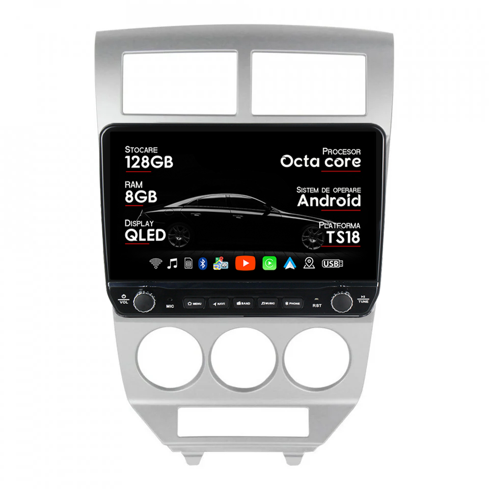 Navigatie dedicata Dodge Caliber 2007-2014 Tesla Cu Butoane Rotative Model 2024, ANDROID 13, 10 inch , 8+128GB, Internet, Aplicatii, Waze, GPS