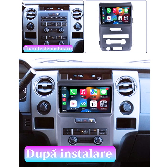 Ford Navigatie dedicata Ford F150 2008-2014, 4GB RAM 64GB ROM, Procesor Qualcomm Octacore, Android 14, Rezolutie 2K, Display QLED 9", DSP, Carplay&Android Auto, SIM 4G