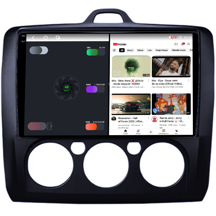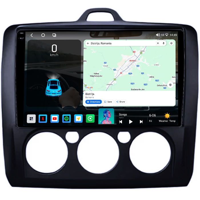 Ford Navigatie dedicata Focus 2004-2011 Clima Manuala, Neagra, 4GB RAM 64GB ROM, Procesor Qualcomm Octacore, Android 14, Rezolutie 2K, Display QLED 9", DSP, Carplay&Android Auto, SIM 4G