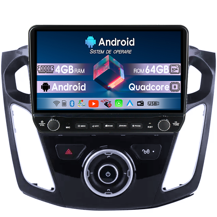 Ford Navigatie dedicata Ford Focus 3 2012-2018 Tesla cu butoane rotative model 2024, 4GB RAM 64GB ROM, Procesor Quadcore, Android 14, Display QLED 10", DSP, Carplay&Android Auto