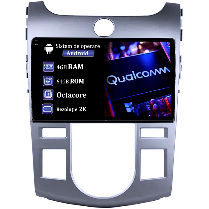 Kia Navigatie dedicata Kia Forte Cerato 2008-2013, Black, 4GB RAM 64GB ROM, Procesor Qualcomm Octacore, Android 14, Rezolutie 2K, Display QLED 9", DSP, Carplay&Android Auto, SIM 4G