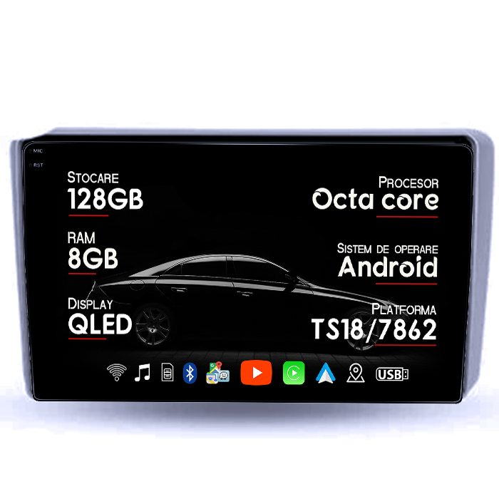 Navigatie dedicata Hyundai Getz 2004-2006, 8GB RAM 128GB ROM, Octacore, Platforma TS18, Android 14, Display QLED 9", Suporta camera 360", DSP, Carplay&Android Auto, SIM 4G, Ventilator Activ