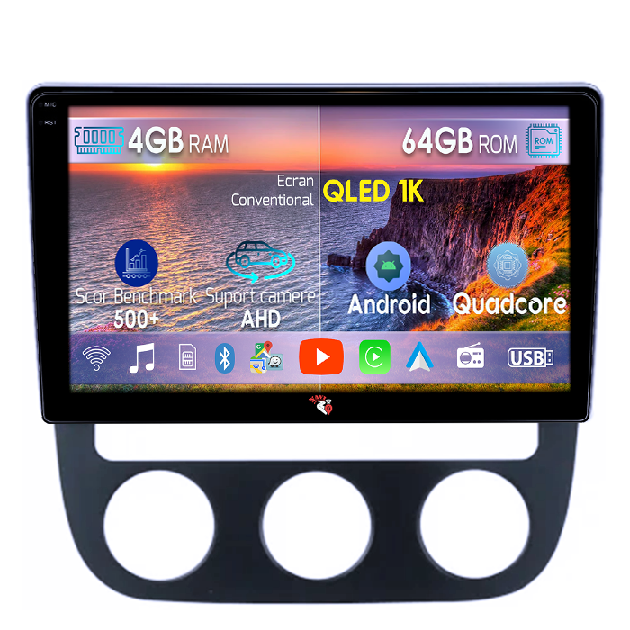 Volkswagen Navigatie dedicata Volkswagen Sagitar / Jetta5 2006-2010 si Golf 5, 4GB RAM 64GB ROM, Octacore, Android 14, Display QLED 1K 10", DSP, Carplay, Android Auto, Internet, Youtube, Waze, WIFI