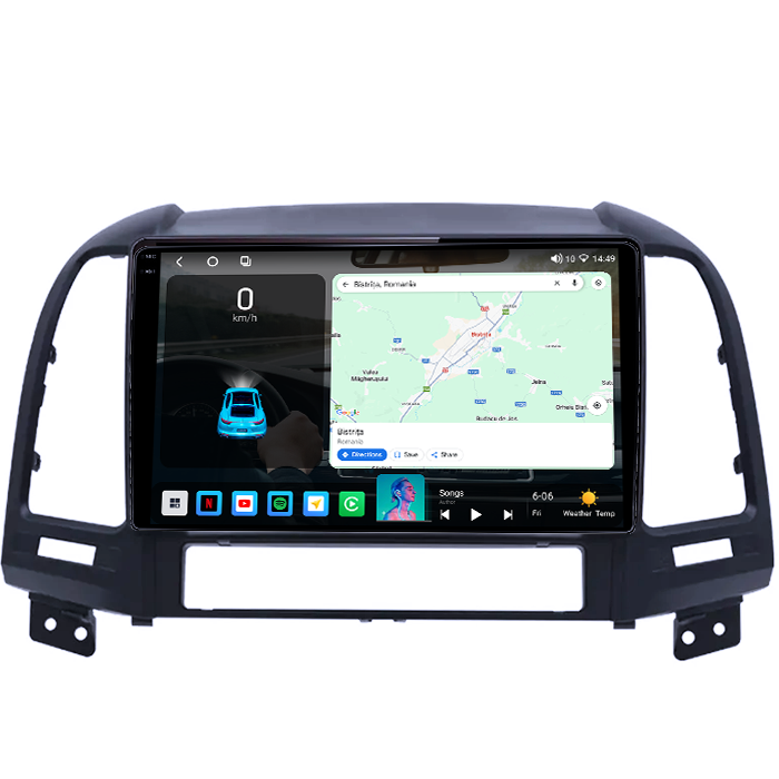 Hyundai Navigatie dedicata Hyundai Santa Fe 2006-2012, 4GB RAM 64GB ROM, Procesor Qualcomm Octacore, Android 14, Rezolutie 2K, Display QLED 9", DSP, Carplay&Android Auto, SIM 4G