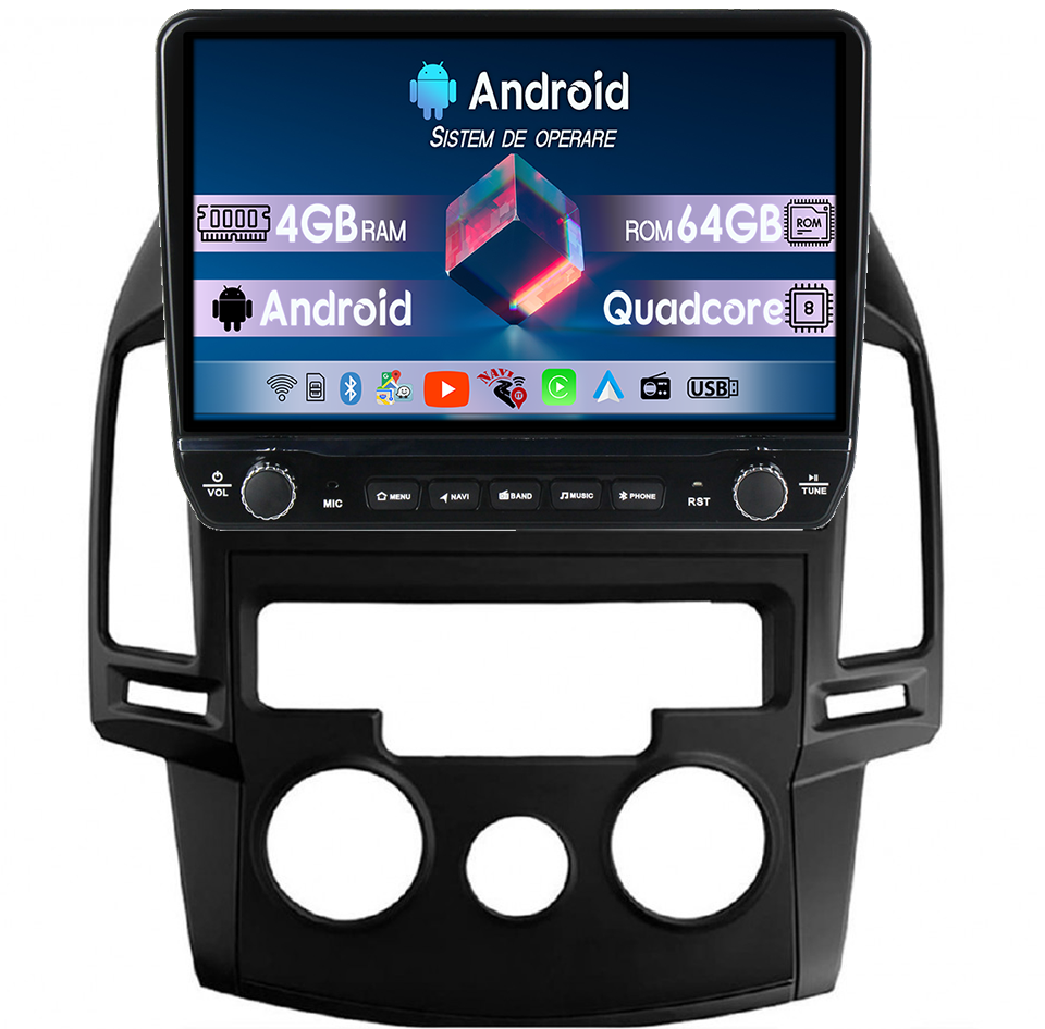 Hyundai Navigatie dedicata Hyundai I30 2007-2016, clima manuala, Tesla cu butoane rotative model 2024, 4GB RAM 64GB ROM, Procesor Quadcore, Android 14, Display QLED 10", DSP, Carplay&Android Auto