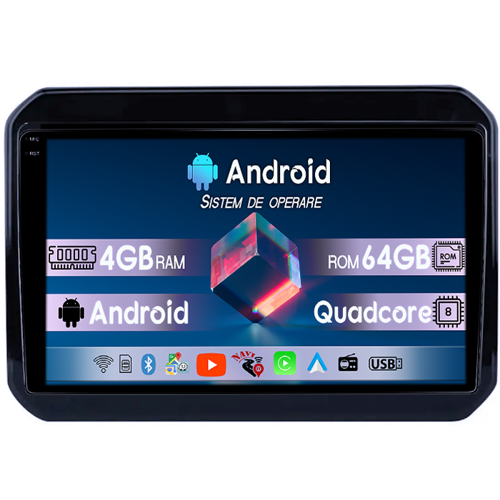 Suzuki Navigatie dedicata Suzuki Ignis 2000-2005, 4GB RAM 64GB ROM, Quadcore, Android 14, Display QLED 9", DSP, Carplay&Android Auto, Suport camere AHD