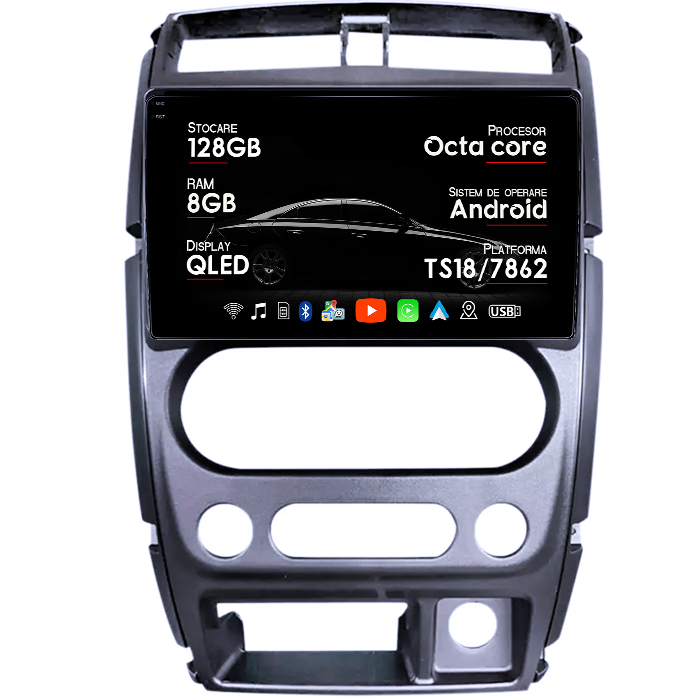 Navigatie dedicata Suzuki Jimny 2007-2012, 8GB RAM 128GB ROM, Octacore, Platforma TS18, Android 14, Display QLED 9", Suporta camera 360", DSP, Carplay&Android Auto, SIM 4G, Ventilator Activ
