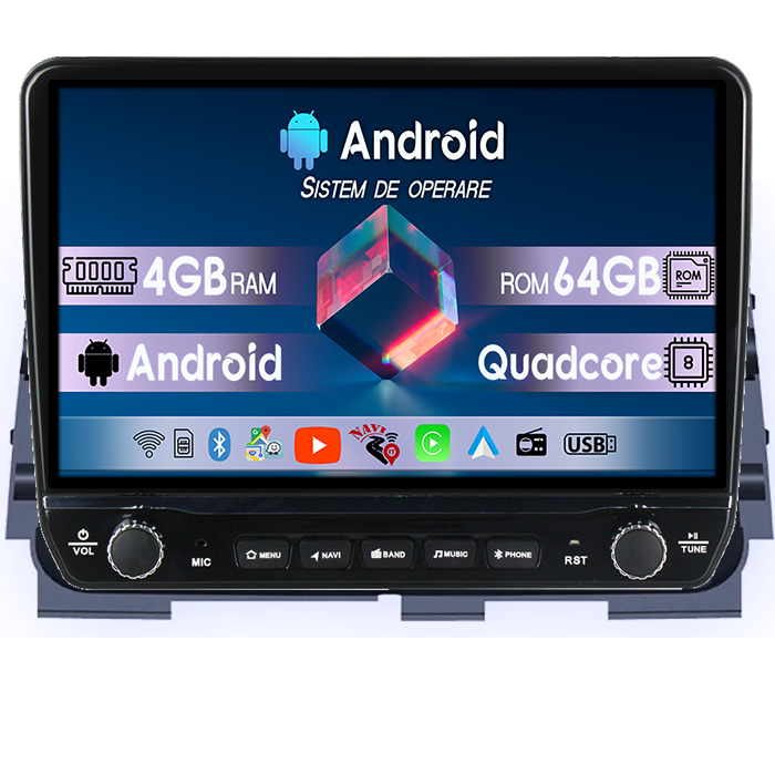 Navigatie dedicata Nissan Kicks Micra P15 2016-2020 Tesla cu butoane rotative model 2024, 4GB RAM 64GB ROM, Procesor Quadcore, Android 14, Display QLED 10", DSP, Carplay&Android Auto