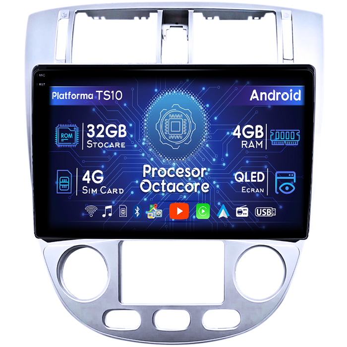 Chevrolet Navigatie dedicata Chevrolet Lacetti 2004-2013, 4GB RAM 32GB ROM, Octacore, Android 14, Display QLED 1K 9", DSP, Carplay&Android Auto, SIM 4G, Bluetooth, Ventilator Activ
