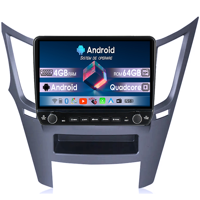 Navigatie dedicata Subaru Legacy Outback 2009-2014 Tesla cu butoane rotative model 2024, 4GB RAM 64GB ROM, Procesor Quadcore, Android 14, Display QLED 10", DSP, Carplay&Android Auto