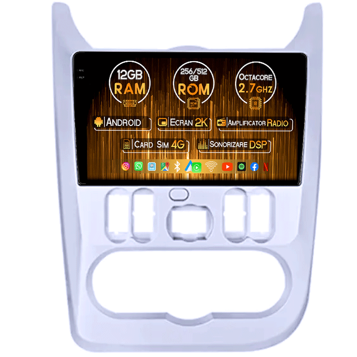 Navigatie dedicata Renault&Dacia 2008-2012, 12GB RAM 256GB ROM, Android 13, Rezolutie 2K, Display QLED, 9", DSP, Carplay, Android Auto, Internet, Youtube, Waze, Wi