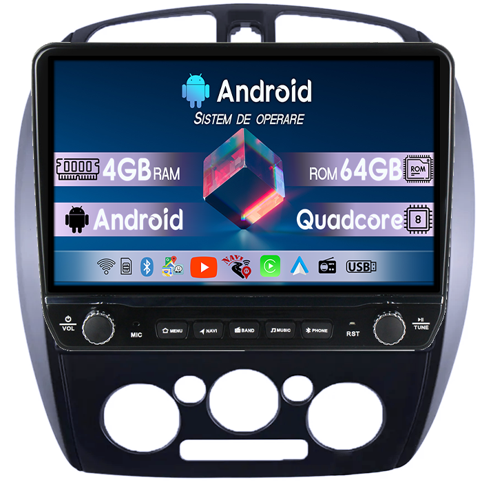 Mazda Navigatie dedicata Mazda 323 Tesla cu butoane rotative model 2024, 4GB RAM 64GB ROM, Procesor Quadcore, Android 14, Display QLED 10", DSP, Carplay&Android Auto