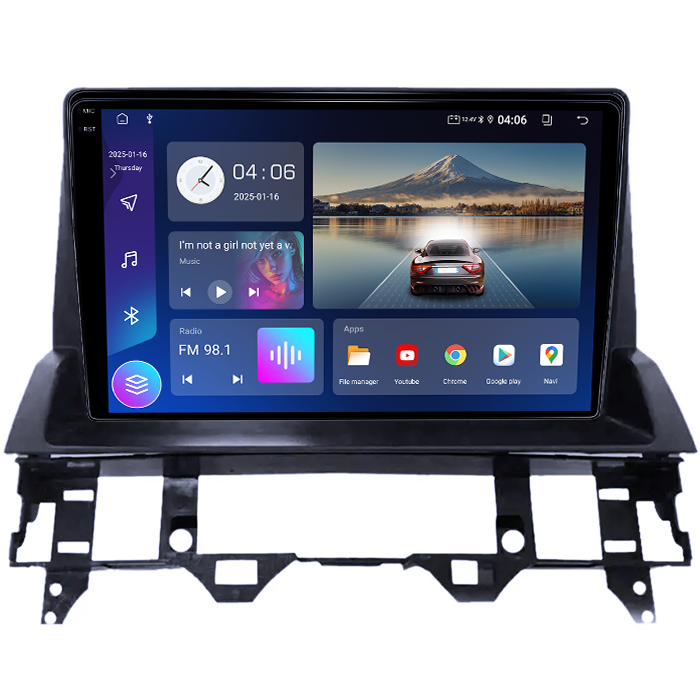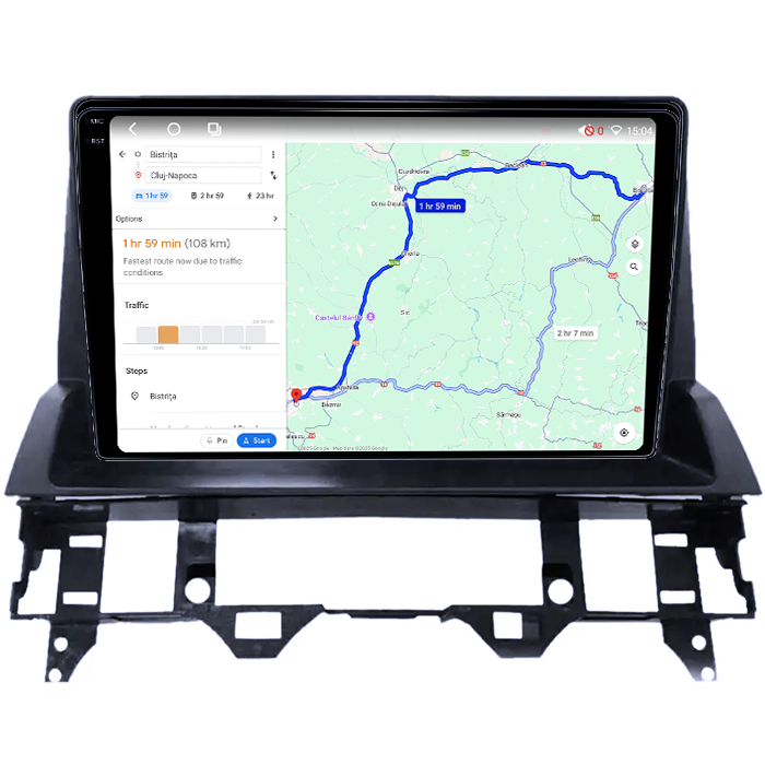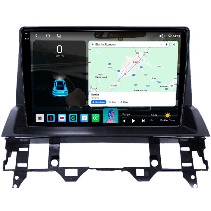Navigatie compatibila cu Mazda 6 intre anii 2002-2008. Unitatea originală radio cd rămâne func?ională în ma?ină, această nouă unitate se conectează pe portul "Aux-IN" al ma?inii care trebuie să fie activ.