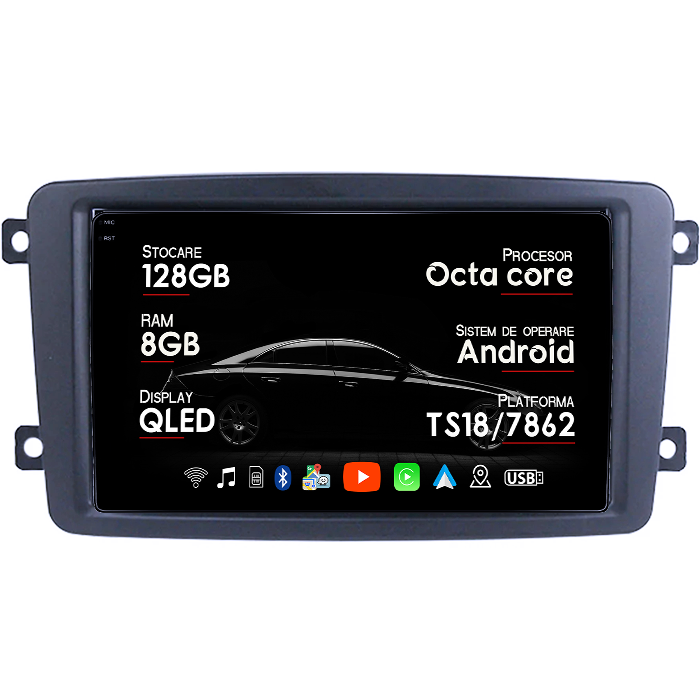 Mercedes-Benz Navigatie dedicata Mercedes Benz W209, W203, 8GB RAM 128GB ROM, Octacore, Platforma TS18, Android 14, Display QLED 7”, DSP, Carplay&Android Auto, SIM 4G