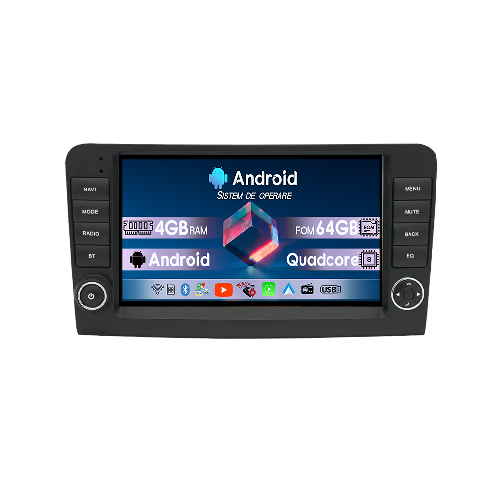 Mercedes-Benz Navigatie dedicata Mercedes ML Butoane W164 2005-2012, 4GB RAM 64GB ROM, Quadcore, Android 14, Display QLED 9", DSP, Carplay&Android Auto, Suport camere AHD