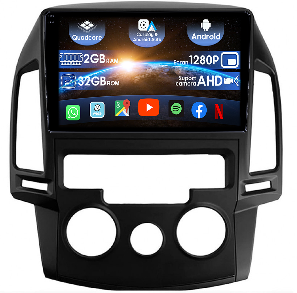 (Resigilata) Navigatie dedicata Hyundai i30 2007-2012, clima manuala, 2GB RAM 32GB ROM, Quad Core, Display 9" IPS Full HD, Carplay, Android 13, Bluetooth, Magazin Play, Suport camere AHD