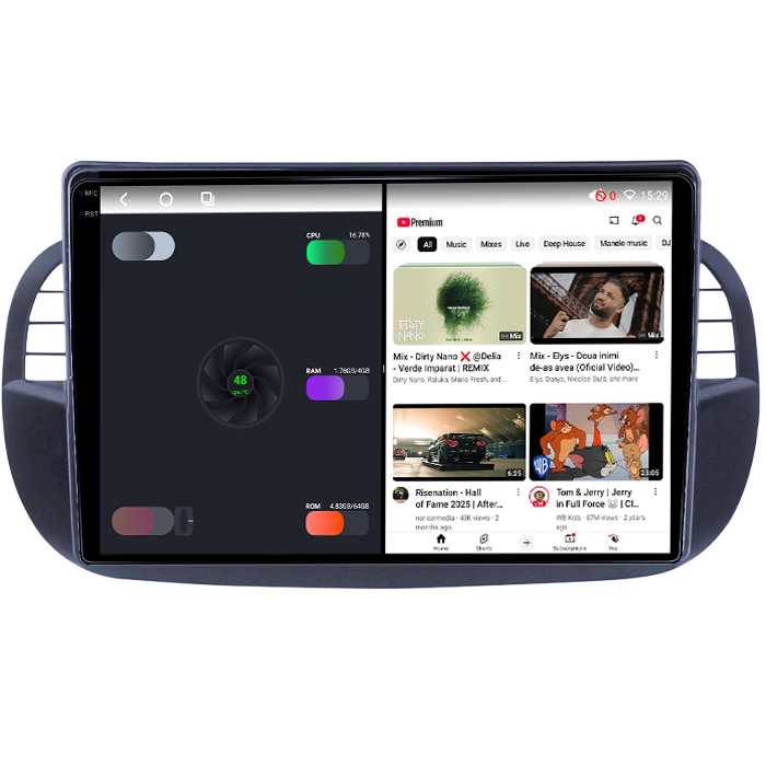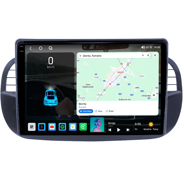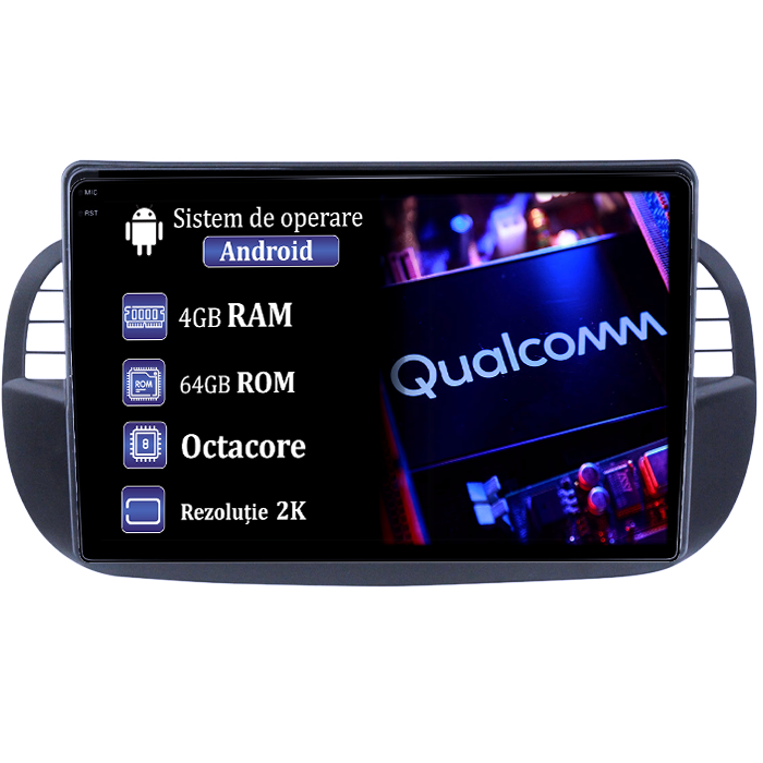 Fiat Navigatie dedicata Fiat 500, 4GB RAM 64GB ROM, Procesor Qualcomm Octacore, Android 14, Rezolutie 2K, Display QLED 9", DSP, Carplay&Android Auto, SIM 4G