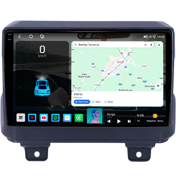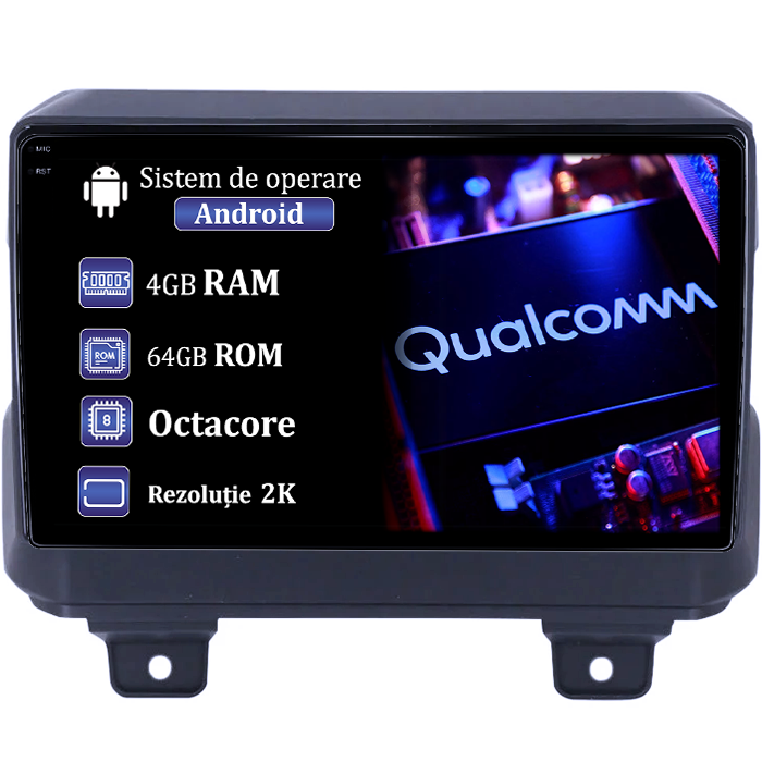 Jeep Navigatie dedicata Jeep Wrangler 2018-2019, 4GB RAM 64GB ROM, Procesor Qualcomm Octacore, Android 14, Rezolutie 2K, Display QLED 9", DSP, Carplay&Android Auto, SIM 4G