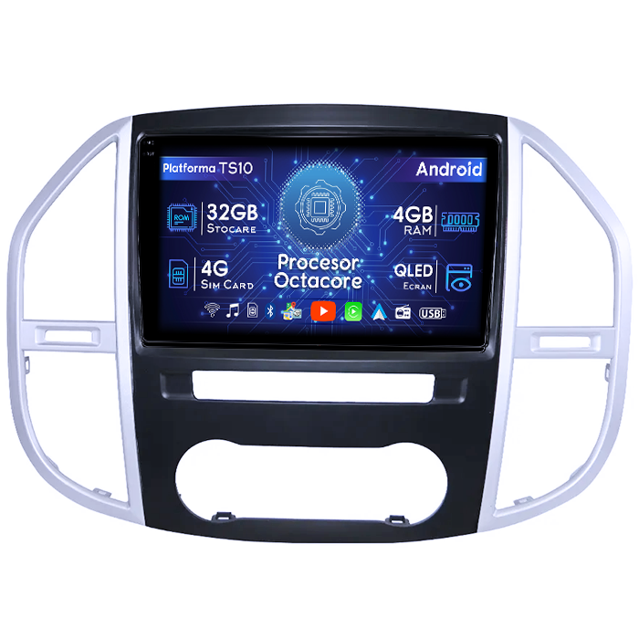 Mercedes-Benz Navigatie dedicata Mercedes Vito 2016-2019, 4GB RAM 32GB ROM, Octacore, Android 14, Display QLED 1K 10", DSP, Carplay&Android Auto, SIM 4G, Bluetooth, Ventilator Activ