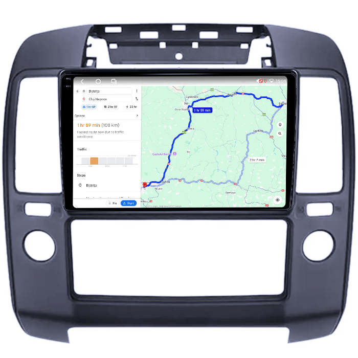Nu e compatibila cu masini cu navigatie de fabrica. Masinile trebuie sa aiba unitate de climatronic ca si in imaginea de mai jos