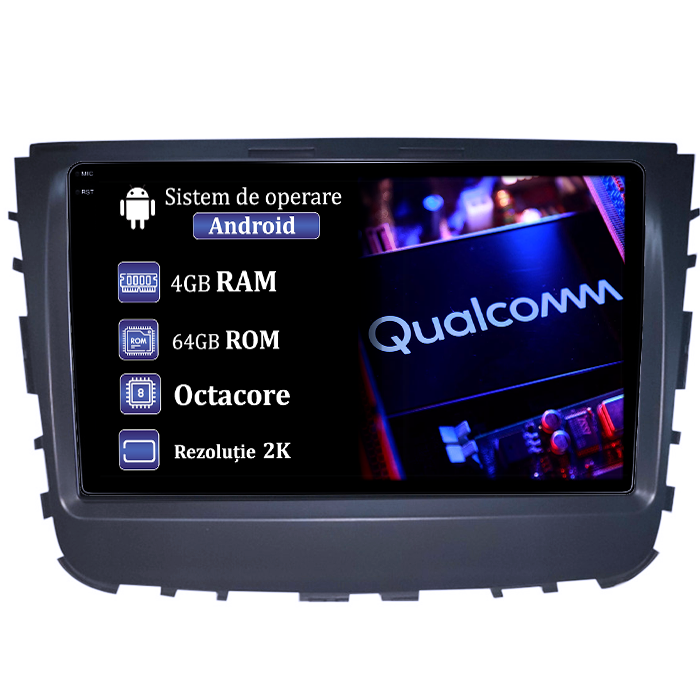 SsangYong Navigatie dedicata SsangYong Rexton 2019, 4GB RAM 64GB ROM, Procesor Qualcomm Octacore, Android 14, Rezolutie 2K, Display QLED 9", DSP, Carplay&Android Auto, SIM 4G