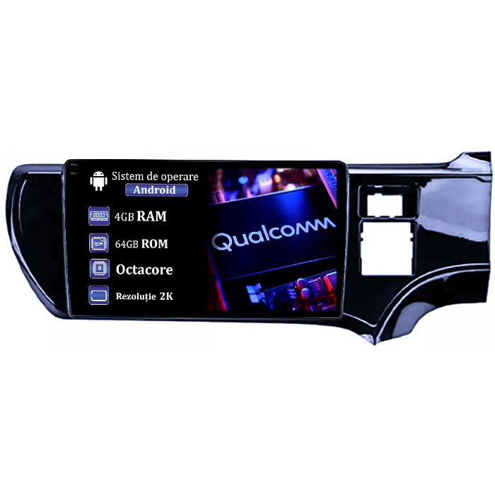 Toyota Navigatie dedicata Toyota Aqua 2011-2017 Right, 4GB RAM 64GB ROM, Procesor Qualcomm Octacore, Android 14, Rezolutie 2K, Display QLED 9", DSP, Carplay&Android Auto, SIM 4G