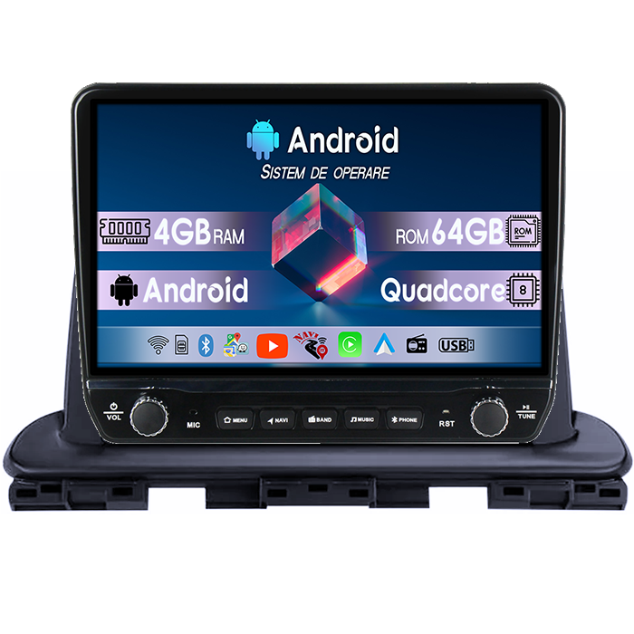 Navigatie dedicata Kia Cerato 2018-2021 Tesla cu butoane rotative model 2024, 4GB RAM 64GB ROM, Procesor Quadcore, Android 14, Display QLED 10", DSP, Carplay&Android Auto