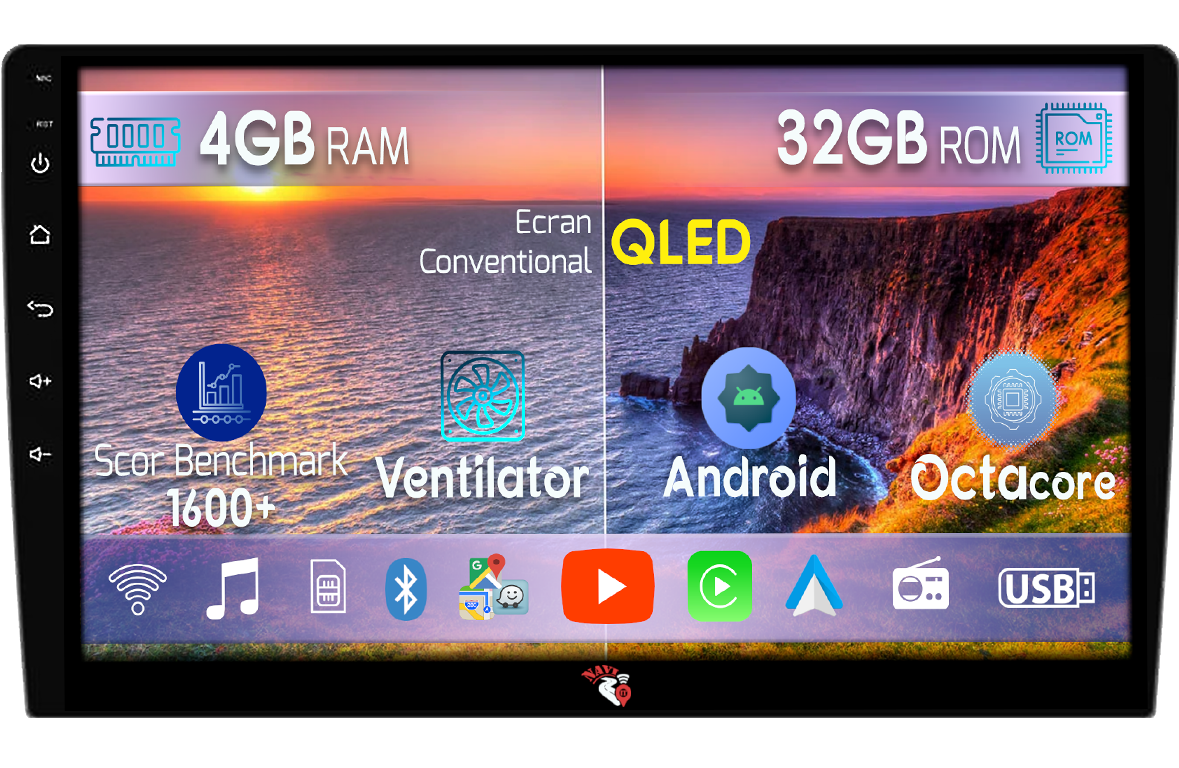 (Resigiliata) Navigatie GPS NAVI-IT universala, 4GB RAM 32GB ROM, Android 13, Display QLED 1K 10", DSP, Carplay, Android Auto, Internet, Youtube, Waze, WI-FI, USB, Bluetooth