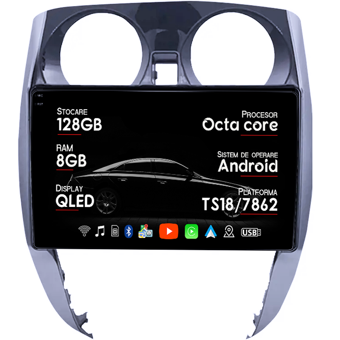 Navigatie dedicata Nissan Note 2012-2019, 8GB RAM 128GB ROM, Octacore, Platforma TS18, Android 14, Display QLED 9", Suporta camera 360", DSP, Carplay&Android Auto, SIM 4G, Ventilator Activ