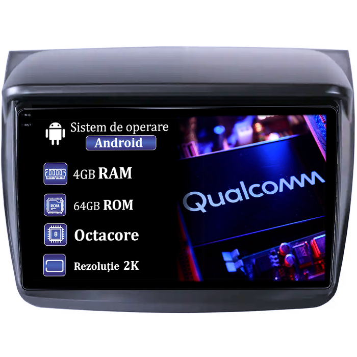 Mitsubishi Navigatie dedicata Mitsubishi Pajero Sport 2014, 4GB RAM 64GB ROM, Procesor Qualcomm Octacore, Android 14, Rezolutie 2K, Display QLED 9", DSP, Carplay&Android Auto, SIM 4G