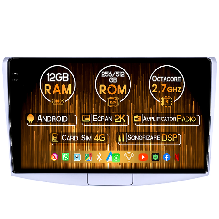Volkswagen Navigatie dedicata VW Passat B6/B7/CC Gri, 12GB RAM 256GB ROM, Android 14, Rezolutie 2K, Display QLED, 10", DSP, Carplay, Android Auto, Internet, Youtube, Waze, Wi Fi, USB