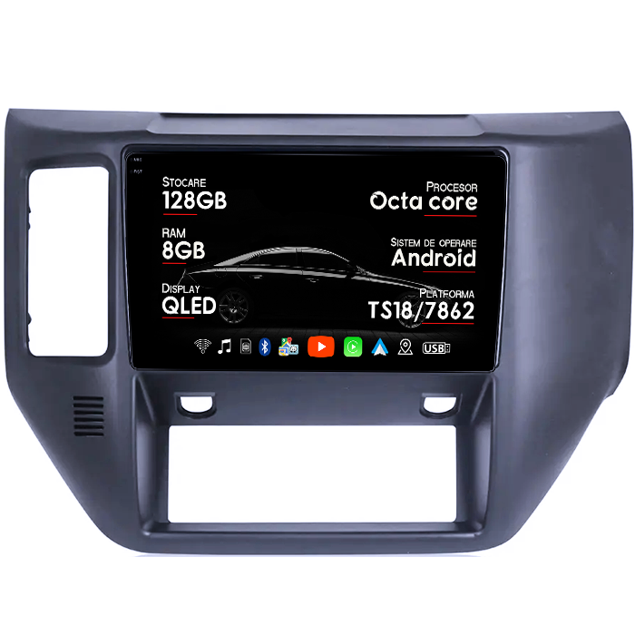 Navigatie dedicata Nissan Patrol 2011-2015, 8GB RAM 128GB ROM, Octacore, Platforma TS18, Android 14, Display QLED 9", Suporta camera 360", DSP, Carplay&Android Auto, SIM 4G, Ventilator Activ
