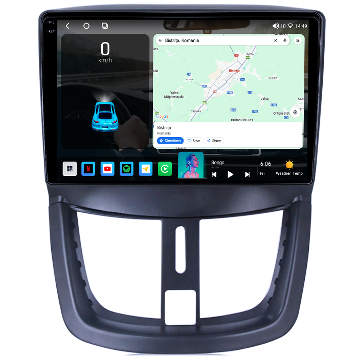 Peugeot Navigatie dedicata Peugeot 207 2006-2015, 4GB RAM 64GB ROM, Procesor Qualcomm Octacore, Android 14, Rezolutie 2K, Display QLED 9", DSP, Carplay&Android Auto, SIM 4G