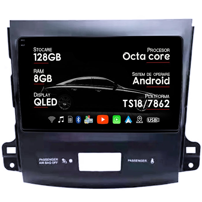 Peugeot Navigatie dedicata Peugeot 4007 ( 2007 - 2012 ), 8GB RAM 128GB ROM, Octacore, Platforma TS18, Android 14, Display QLED 9", Suporta camera 360", DSP, Carplay&Android Auto, SIM 4G, Ventilator Activ
