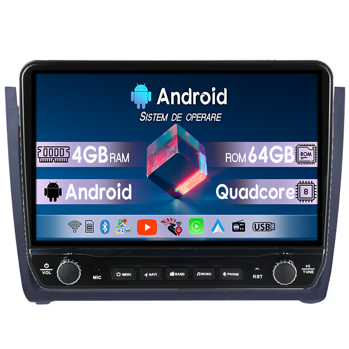 Navigatie dedicata Volkswagen Polo 2010-2018 Tesla cu butoane rotative model 2024, 4GB RAM 64GB ROM, Procesor Quadcore, Android 14, Display QLED 10", DSP, Carplay&Android Auto