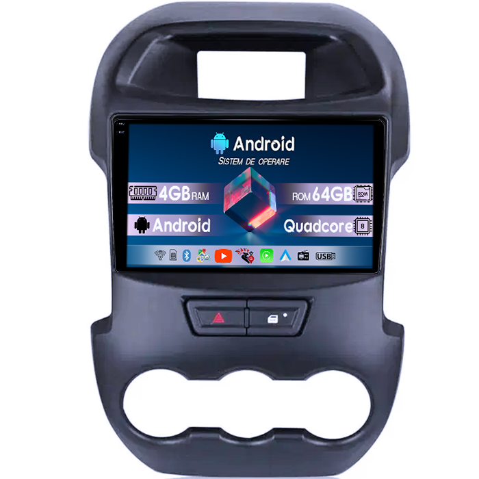 Ford Navigatie dedicata Ford Ranger 2011-2016, 4GB RAM 32GB ROM, Octacore, Android 14, Display QLED 1K 9", DSP, Carplay&Android Auto, SIM 4G, Bluetooth, Ventilator Activ