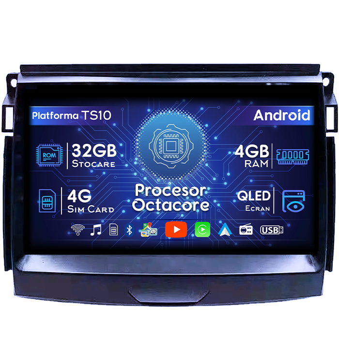 Ford Navigatie dedicata Ford Ranger 2015-2020, 4GB RAM 32GB ROM, Octacore, Android 14, Display QLED 1K 9", DSP, Carplay&Android Auto, SIM 4G, Bluetooth, Ventilator Activ