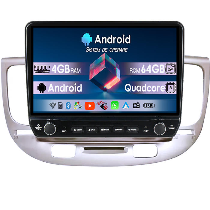 Kia Navigatie dedicata Kia RIO2 2005-2011 Tesla cu butoane rotative model 2024, 4GB RAM 64GB ROM, Procesor Quadcore, Android 14, Display QLED 10", DSP, Carplay&Android Auto
