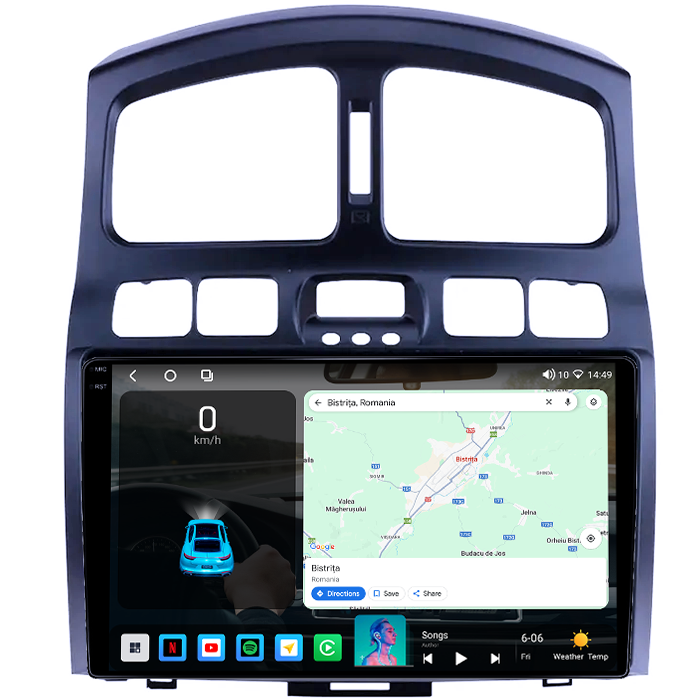 Hyundai Navigatie dedicata Hyundai Santa Fe 2000-2012, 4GB RAM 64GB ROM, Procesor Qualcomm Octacore, Android 14, Rezolutie 2K, Display QLED 9", DSP, Carplay&Android Auto, SIM 4G
